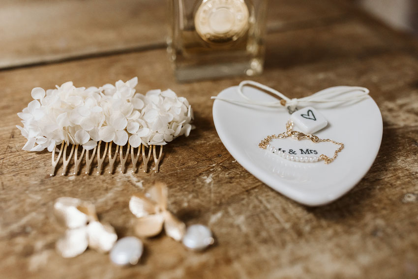 Plusieurs photos des alliances dans un mini studio quelques semaines avant le mariage.